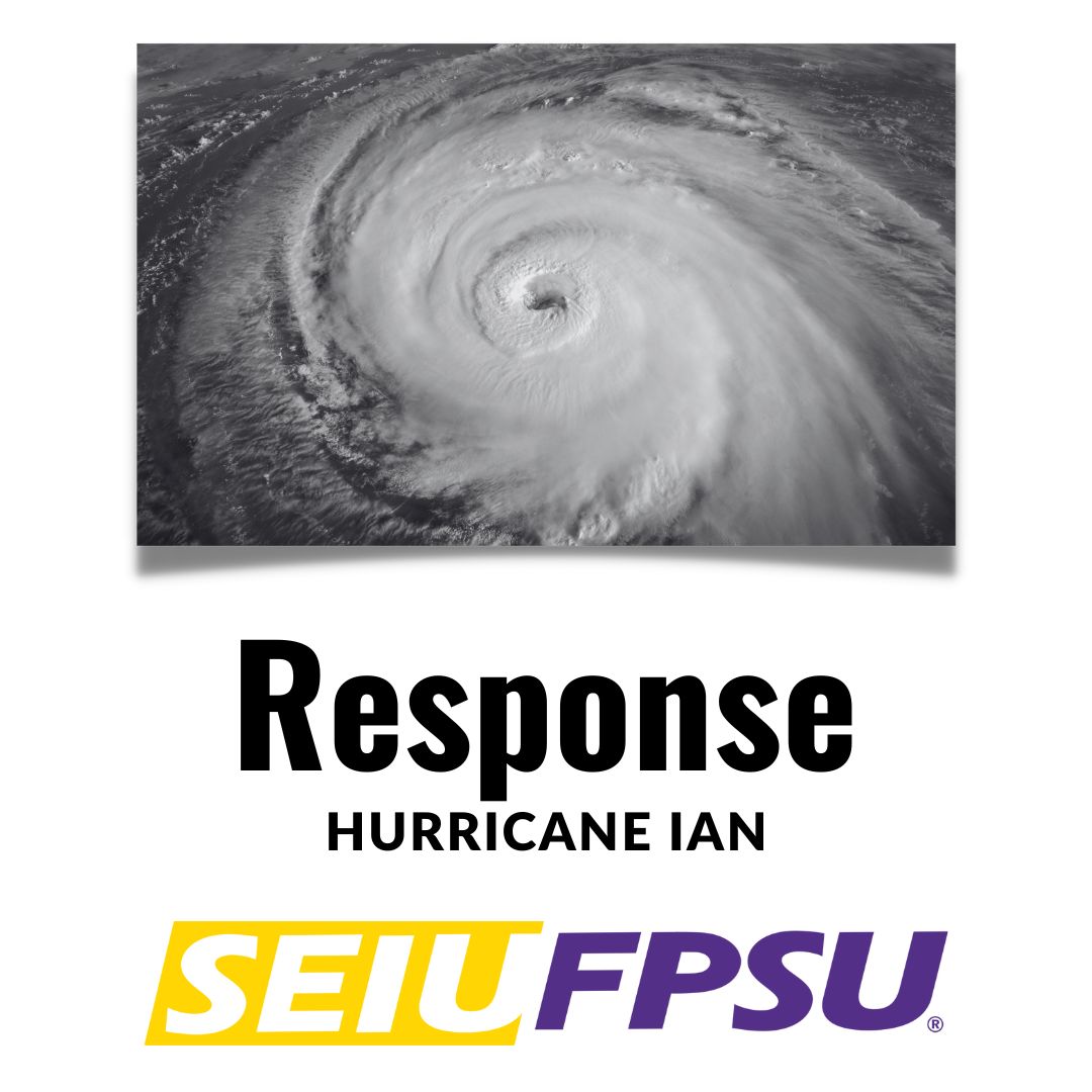 As Hurricane Ian has caused devastation through out the State, at SEIU FPSU we are checking with out members to do a safety and need analysis. Please fill this form to let us know about your safety and or any assistance you may need at this time. Click here